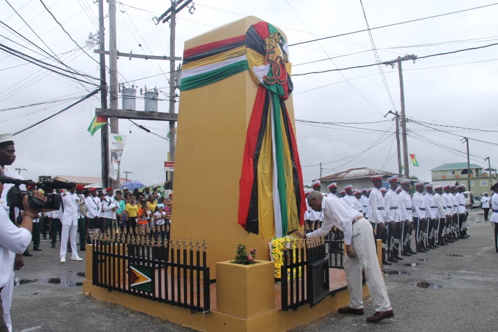 The President’s address and his unveiling of a plaque with Mayor Gifford Marshall to officially declare Bartica a town was preceded by a parade of soldiers and police.
