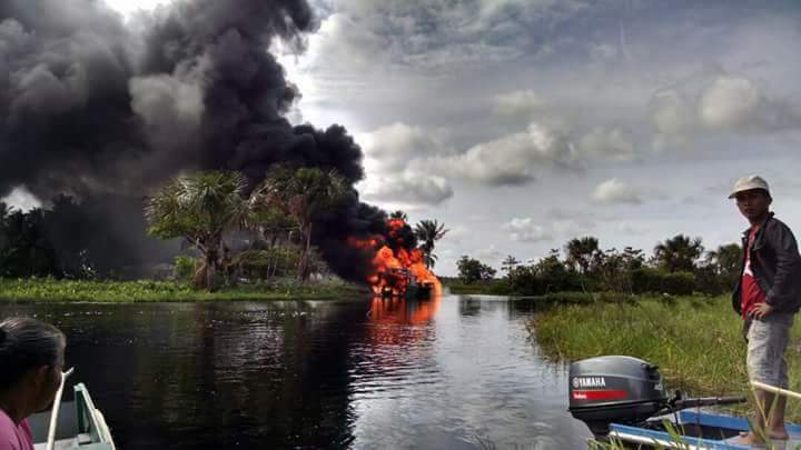 The captain of the vessel, Mr. Lindo told investigators that he was offloading fuel containers when he heard an explosion and then saw the vessel engulfed in flames.