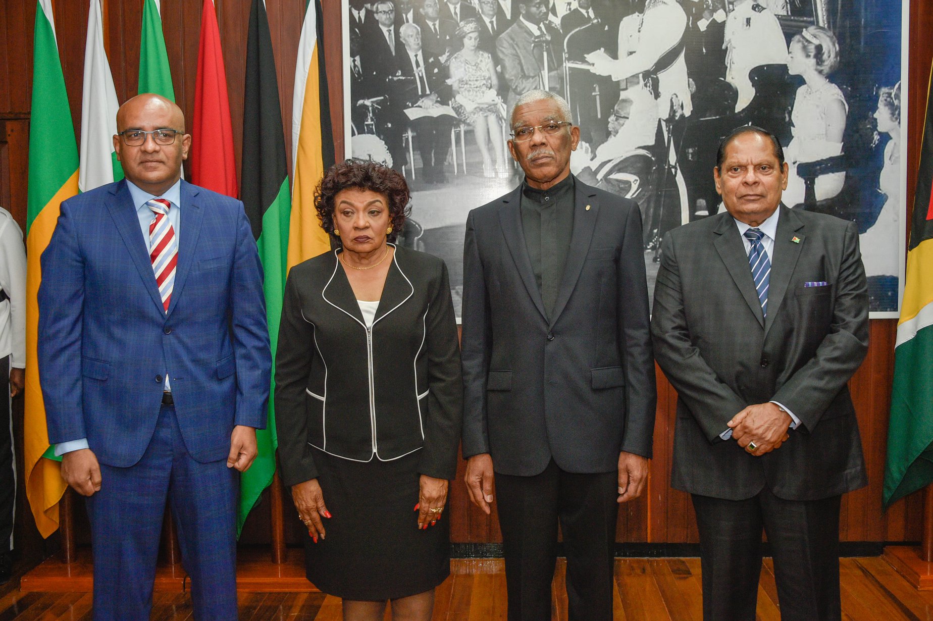Left to right: Opposition Leader Bharrat Jagdeo, GECOM Chairman Claudette Singh, President David Granger and Prime Minister Moses Nagamootoo.