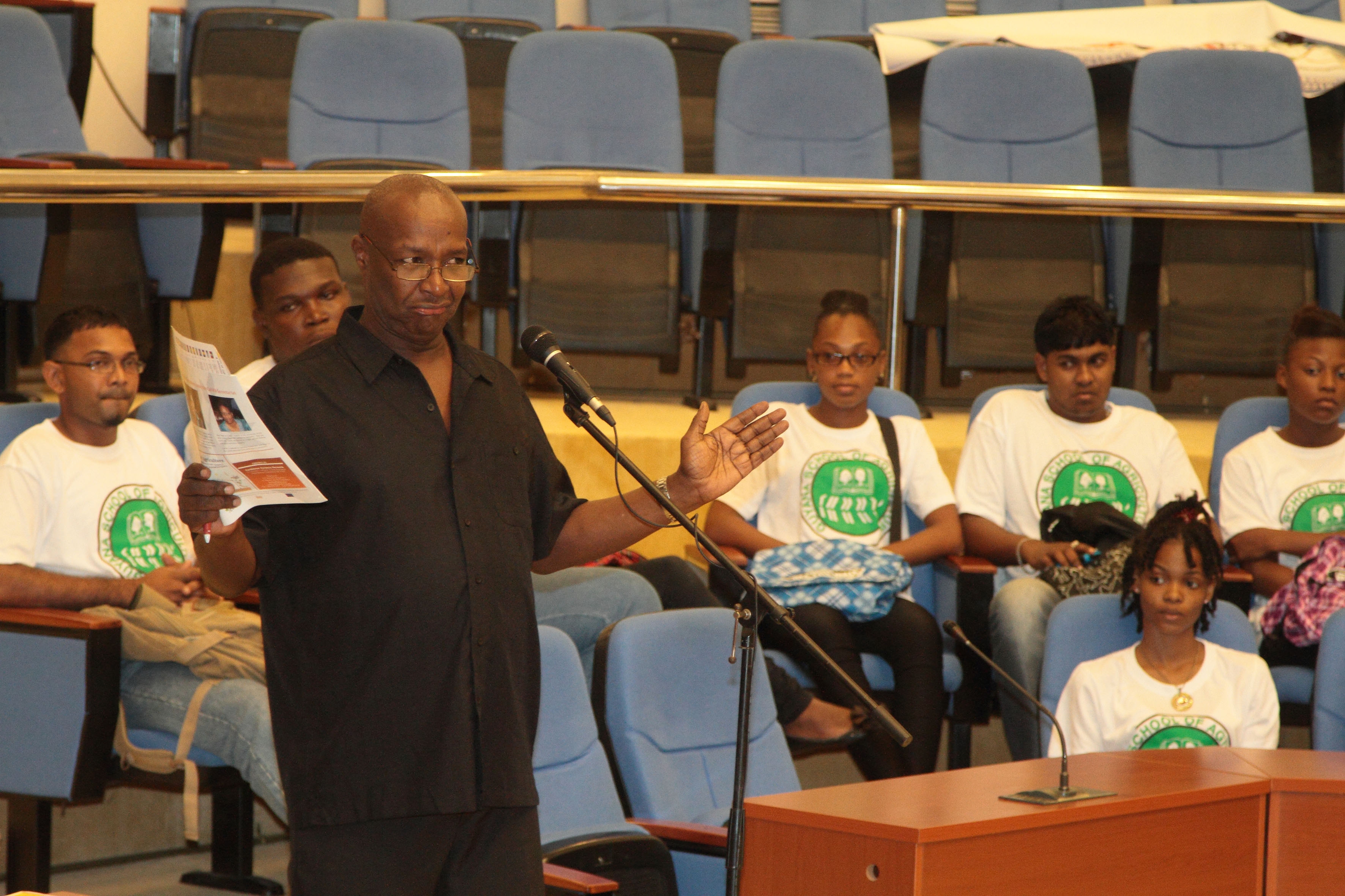 “It is your job to think outside the box, not to accept the nonsense that’s been put on us about how agriculture is and how agriculture should be,” he urged the youths, most of whom were from the Guyana School of Agriculture (GSA).