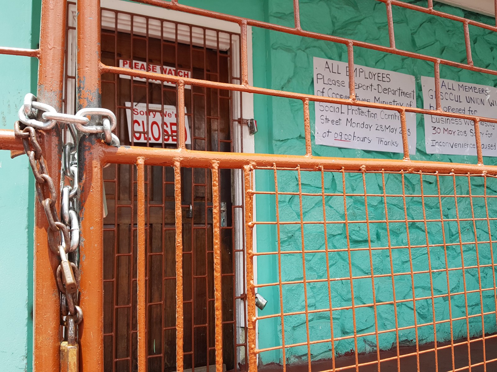 Credit Union Chairwoman, Patricia Went said said the Chief Cooperative Officer at the Ministry of Social Protection’s Department of Labour, Perlina Gifth last week Friday seized the offices on Hadfield Street, Newburg, Georgetown, padlocked the gates and security guards deployed after the union demanded Minister Keith Scott put his latest position at a meeting in writing. “Instead of getting a reply, we get padlocks put on the gate….Well, the situation this morning is that everybody get locked out. The gates are locked, there are notices on the building. They even put out our guards that we had,” said Went. By way of a notice posted on the credit union’s building, staff were asked to report to the Department of Cooperatives on Monday at 9 AM. Members were told that the Credit Union would be opened for business on Wednesday, May 30, 2018.
