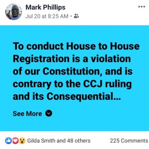 His call for respect for the constitution has seen him coming under intense criticism in the more than 200 comments under his Facebook post. “Mark Phillips, this is a most ignorant and unfortunate statement. It encapsulates your abject lack of knowledge and intellectual heft and portrays you in the category of a house slave, Trump republican – shallow and foolish, and regurgitating PPP koolaid without verifying its truthfulness. Since when registering to vote, as mandated by the constitution, is a violation of the constitution?