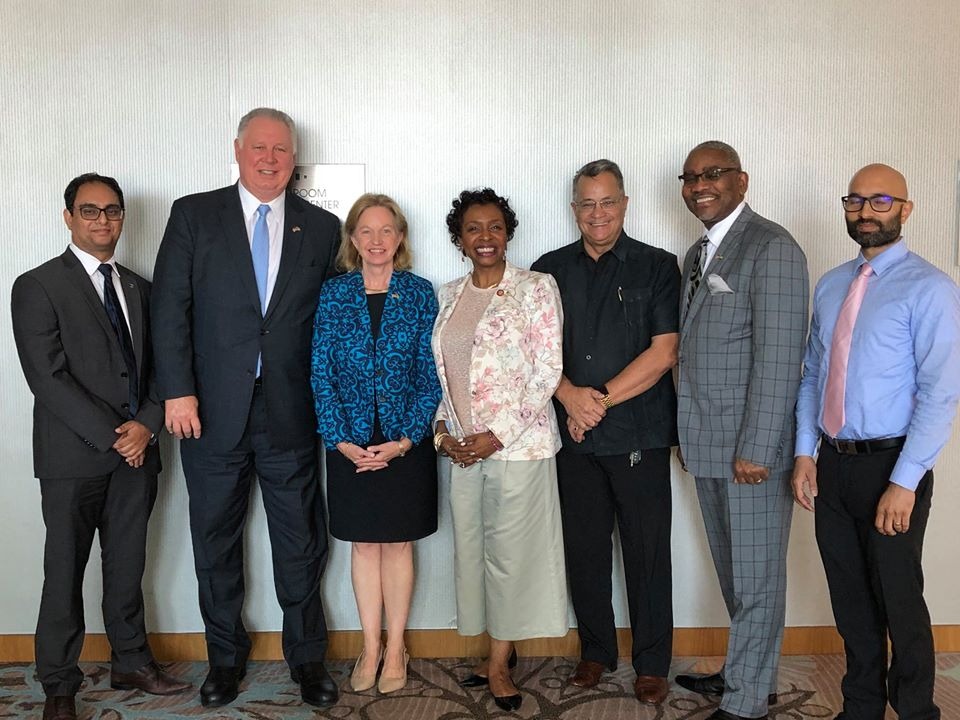 The visiting members of the US Democratic Party—Yvette D. Clarke, Gregory W. Meeks, and Albo Sires—held talks with Opposition Leader Bharrat Jagdeo, President David Granger, Guyana Elections Commission members, and representatives of the private sector including the American Chamber of Commerce-Guyana (AMCHAM-G). Meeks serves as the US Representative for New York’s 5th congressional district, which is home to a large population of Guyanese.