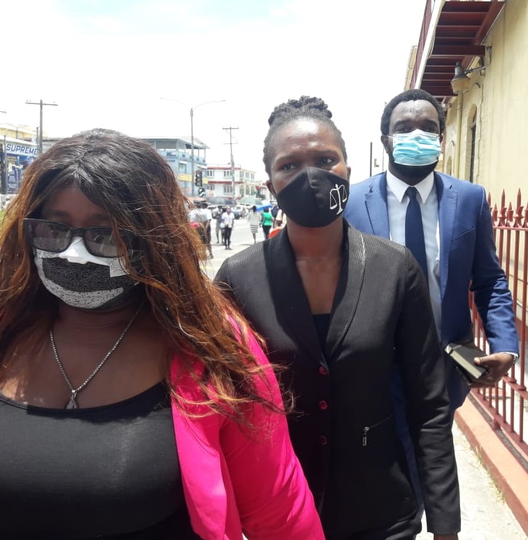 GECOM official Sheffern February and her Attorneys-at-Law Latoya Roberts and Eusi Anderson as they left the Georgetown Magistrates' Court.