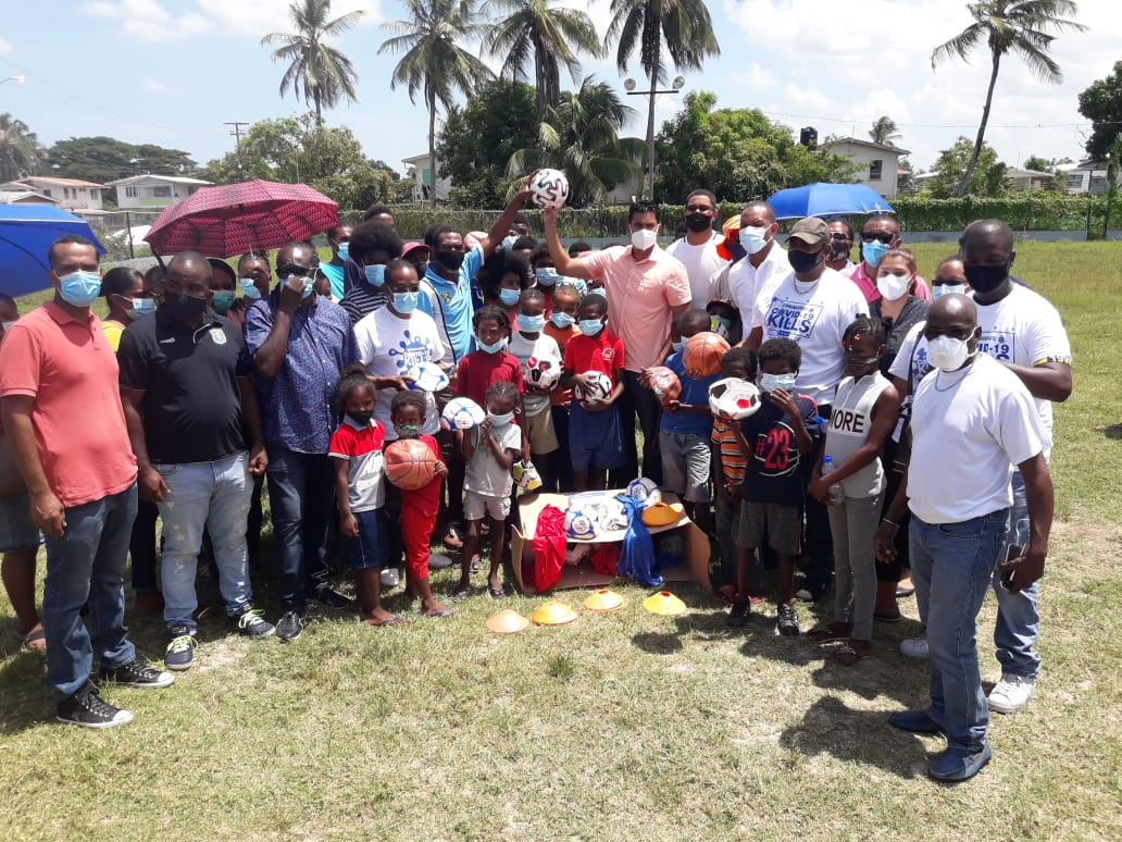 Ramson led a team of officials from his ministry on walk-through and meet-and-greet in Agricola before presenting youths on the community playground with footwear, basketballs, footballs and other items. He said that community was earmarked because community leaders had told him that the previous government had not acceded to a request for sport gears and “they said ‘no’.”