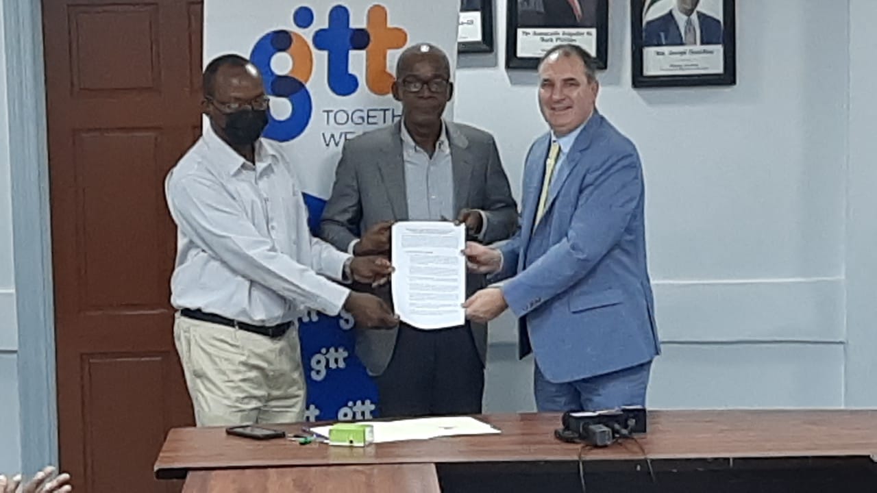 Speaking at the signing of an accord between GTT and the Guyana Postal and Telecommunication Workers Union (GPTWU) in the presence of the Chief Labour Officer of the Ministry of Labour, GTT’s Chief Executive Officer Damian Blackburn admitted that last October’s 6 percent pay increase wasn’t “quite sufficient” and so workers would be paid an additional 2 percent retroactive to 1st February, 2022.