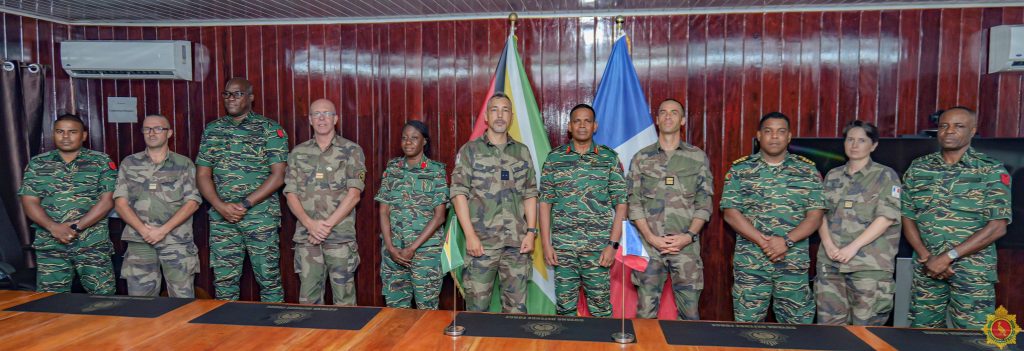 General Le Bouil led an 11-member delegation to Guyana for a courtesy call with Chief-of-Staff Brigadier Omar Khan and other key members of the Guyana Defence Force leadership.