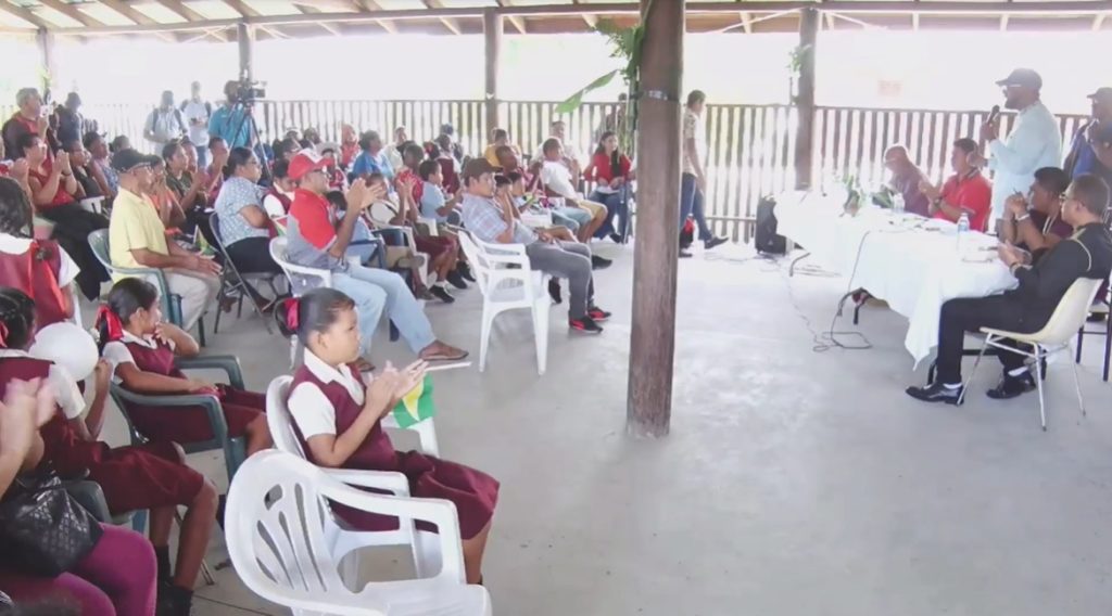 President Irfaan Ali addressing residents of Santa-Aratak Mission on June 25,2024