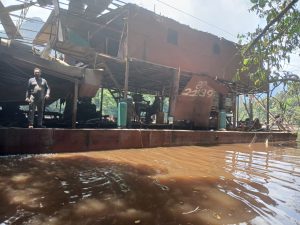 Police said the team arrived at Amatuk in Region Eight (Potaro-Siparuni) by a Guyana Defence Force (GDF) helicopter at about 10:30 Sunday morning and which was moored on the western bank of the river, where they located the illegal mining operation, identified as #252339.
