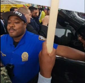 After the crowd grew and the protest intensified, police erected barriers on both sides leading from the door of Waterfall Lounge Bar and Grill. A law enforcement agent ordered those gathered to “pick a side, you not going to move back and forth”. One of the protesters told police that he would move wherever he wants and “don’t come to me with that arrogance.”