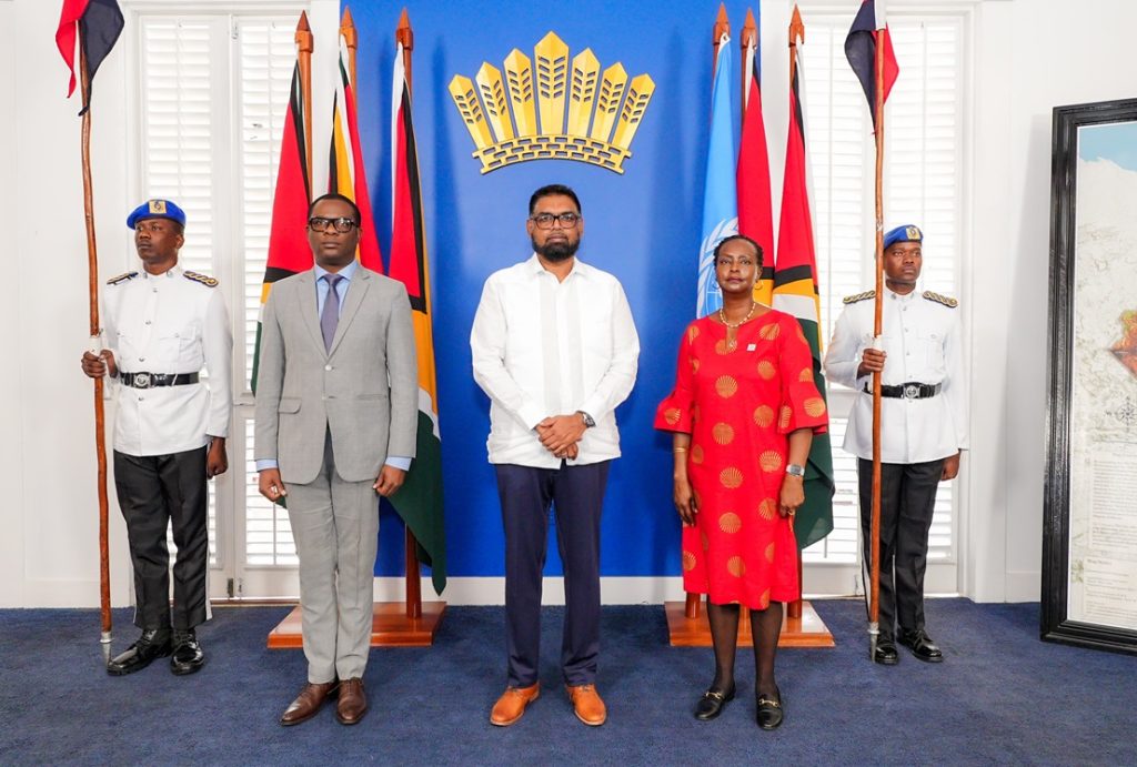 New United Nations Resident Coordinator to Guyana, Ms. Jean Kamau, recently presented her credentials to President Mohamed Irfaan Ali, at the Office of the President.
