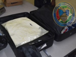 CANU said its agents conducted a narcotic operation at the Eno Backtrack Service in Springlands, Corentyne, Berbice, which led to the discovery of a whitish powdery substance, suspected to be cocaine, concealed within false walls of a black suitcase.