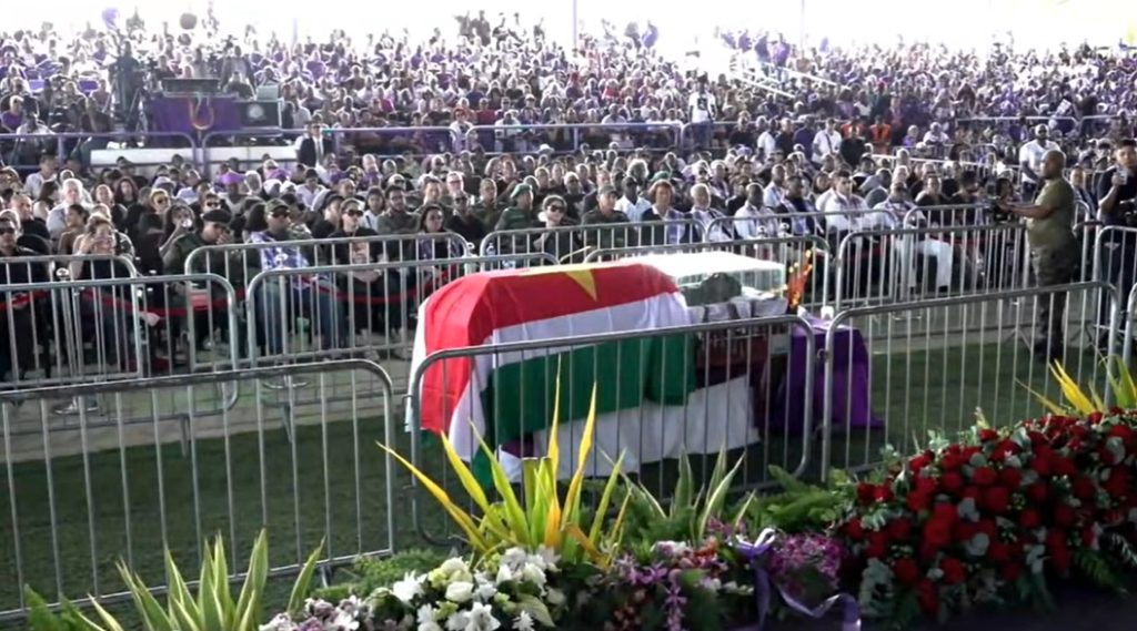 “It is those same morally bankrupt and decadent politicians that have persecuted Comrade Bouterse. Those are the same ones that persecuted and accused him of all types of things,” Mr Ramotar told thousands of persons who attended the funeral in Paramaribo, the capital of the former Dutch colony.