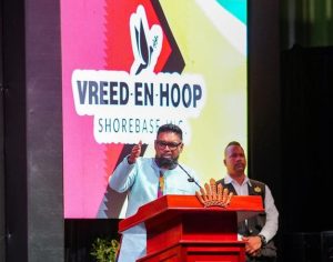 The President said the new US$260 million shorebase at Vreed-en-Hoop, West Demerara, owned by the Guyanese-owned consortium of NRG Holdings and the Belgium-headquartered Jan de Nul Group, would position Guyana as leader in regional logistics. “This is that one additional asset that allows us to build one of the best marine industries and marine sectors in the region… that positions us to build transport and logistics hub and link that is key and critical and brings new opportunities with it,” he said at the commissioning of the facility. That shorebase, which was constructed on an artificial island, has been contracted by ExxonMobil for another 20 years to provide subsea umbilicals, risers, flowlines support for several new offshore oil well developments such a Yellowtail, Uaru, Hammerhead and Whiptail.
