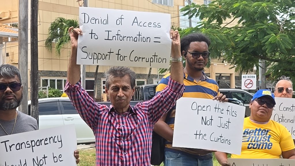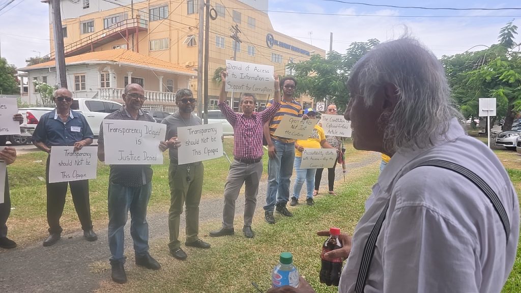 Organised by Attorney-at-Law and Chartered Accountant Christopher Ram, the picketing demonstration on the East Street Avenue opposite Mr Ramson’s office, formerly his residence, attracted participation from civil society activists, private citizens, media personnel, and opposition politicians. Mr Ram said the protest would continue every Friday for the next four weeks by which time he hoped government would meet with representatives of the group to examine whether the less than satisfactory functioning of the mechanism was due to personnel, person or the law. He said the Access To Information Act needed to be reviewed.