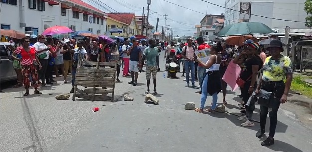 As three forensic pathologists on Monday morning prepared to conduct an autopsy on the body of 11-year old Adriana Young which was found in a hotel pool at Tuschen, East Bank Essequibo last week, sympathisers blocked a section of Middle Street outside the Georgetown Public Hospital mortuary.