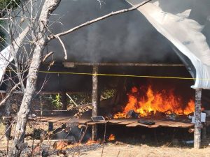 Two hammocks, a camp and other contents were destroyed by fire, police said.