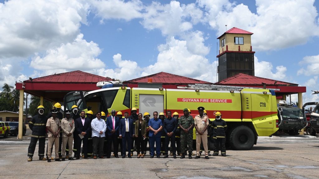 Minister of Home Affairs, Oneidge Walrond on October 13, 2025 said following a high-level meeting with aviation and security stakeholders on that date that she, along with Minister of Aviation Deodat Indar, and key officials, visited the Timehri Fire Station to “assess its operational readiness and ensure that our firefighters are fully equipped to safeguard operations at the nation’s main airport.”