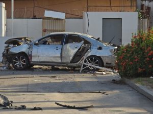 The car that was destroyed in the bomb blast