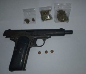 Ballistic experts were due to examine what is believed to be a .32 firearm and one .32 ammunition which were found under a mattress in a bedroom. The search party said they also found two more rounds of ammunition and small transparent Ziplock bags containing eight grammes of leaves, seeds and stems suspected to be cannabis in another part of the house.