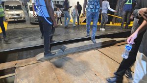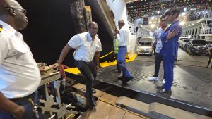 Sailors and other crew members worked feverishly to lower the door, and when they did, it did not land flat on the bridge. This necessitated even the Director-General of the Maritime Administration (MARAD) to inspect and be briefed about the problem. Planks of wood were also placed at the Supenaam wharf to allow vehicles to drive off as there was a slight elevation between the lowered door and the bridge.