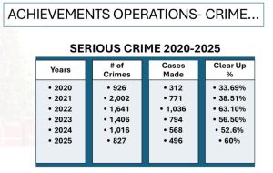 The Guyana Police Force (GPF) has reported the country last year recorded a 25.5 percent reduction in serious crimes compared to 2024.