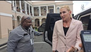 “It was just an interesting, very informal meeting with the Speaker and he just talked a little bit about the upcoming session of Parliament, the budget and the upcoming election for the Leader of the Opposition,” United States (US) Ambassador to Guyana, Nicole Theriot willingly told reporters, even as her security officer attempted to block them several times.