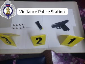 The man was arrested and escorted to the Vigilance Police Station along with the suspected firearm and ammunition, which were lodged.