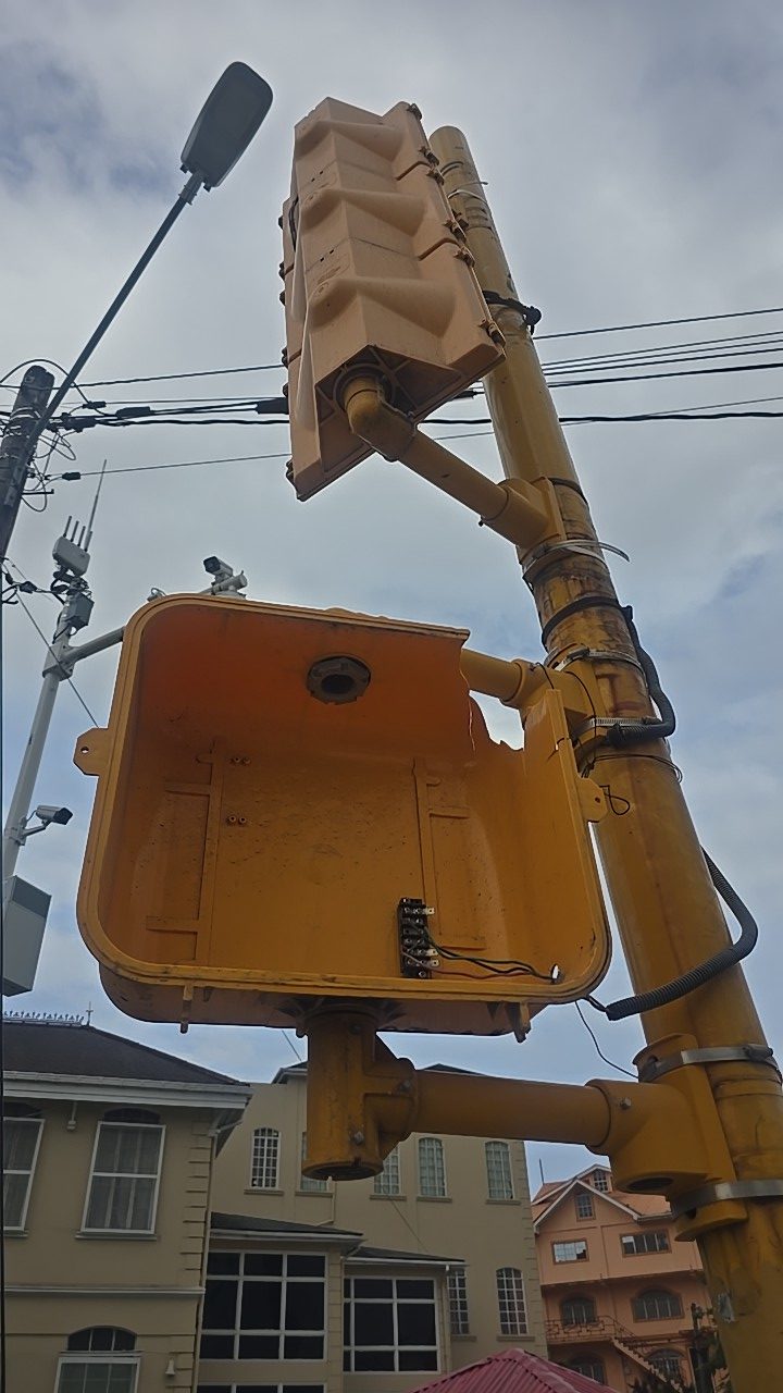 A car slammed into this traffic light at the corner of Regent Street and Avenue of the Republic over the...