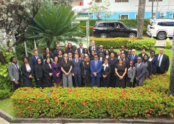 Left to Right: UNDP Resident Representative in Guyana Katy Thompson, Chancellor of the Judiciary Roxane George-Wiltshire, Attorney General Anil Nandlall ...